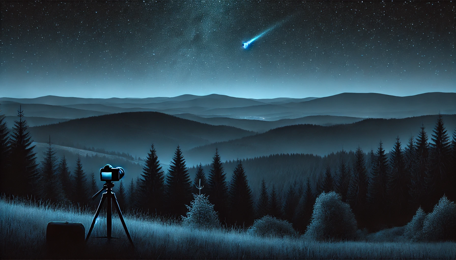 - Panoramatický výhled: Použijte širokoúhlý objektiv (14-24mm) a do snímku zahrňte krajinu Jižních Čech s kometou na obloze.